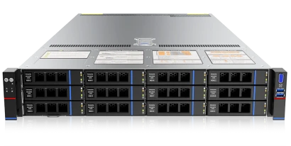 Фронтальная корзина: 12 отсеков 3.5/2.5 дюйма с поддержкой SATA, SAS, опционально NVME. Тыловая корзина: опционально 2 отсека 2.5 SATA
