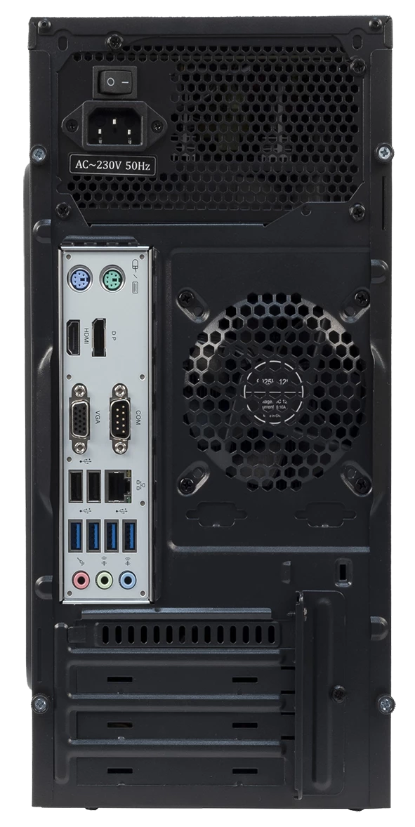 2x USB2.0 Type A, 4x USB3.2 Type A Gen 1, 1хHDMI+1xDP+1xVGA, 1xLine In, 1xLine Out + 1xMic PS/2 port, COM (Serial/Communications port)